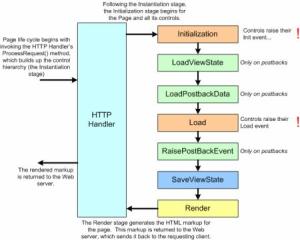 This life cycle of the ASP.NET page starts with a call to the ProcessRequest() method. This method begins by initializing the page’s control hierarchy. Next, the page and its server controls proceed lock-step through various phases that are essential to executing an ASP.NET Web page. These steps include managing view state, handling postback events, and rendering the page’s HTML markup. Figure 2 provides a graphical representation of the ASP.NET page life cycle. The life cycle ends by handing off the Web page’s HTML markup to the Web server, which sends it back to the client that requested the page.