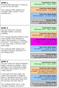 These seven stages are the most important stages with respect to understanding view state. (Note that I did omit a couple of stages, such as the PreRender and Unload stages.) As you continue through the article, keep in mind that every single time an ASP.NET Web page is requested, it proceeds through these series of stages.