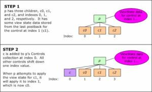 - An ArrayList of integers. This ArrayList maintains the indexes of the Control’s child controls that have a non-null view state.